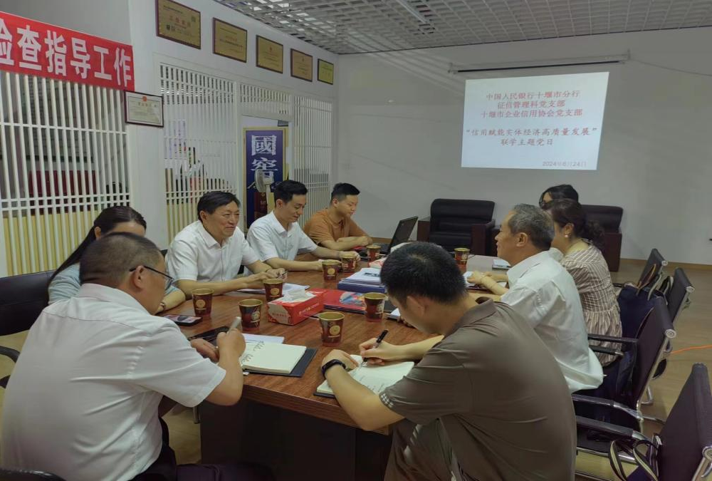 为深入学习贯彻党的二十大精神和深化党纪学习教育,切实把思想和行动统一到党中央决策部署上来,聚焦信用赋能实体经济高质量发展,推动党建与业务交流互鉴。6月24日上午,中国人民银行十堰市分行征信管理科党支部和乐鱼官网登陆入口党支部在乐鱼官网会议室开展了2024年6月份主题党日活动。